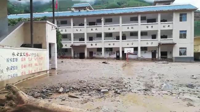 洪水来袭时,校长带着其他老师,迅速叫醒了睡梦中的女娃们,领着她们向屋顶转移,不过五、六分钟的时间,当校长领着女娃们跑到二楼时,洪水已经冲进了一楼的房间。之后,又叫醒二楼、三楼的男生,依次全部跑到了楼顶,这个时候,一楼已经全部淹了。