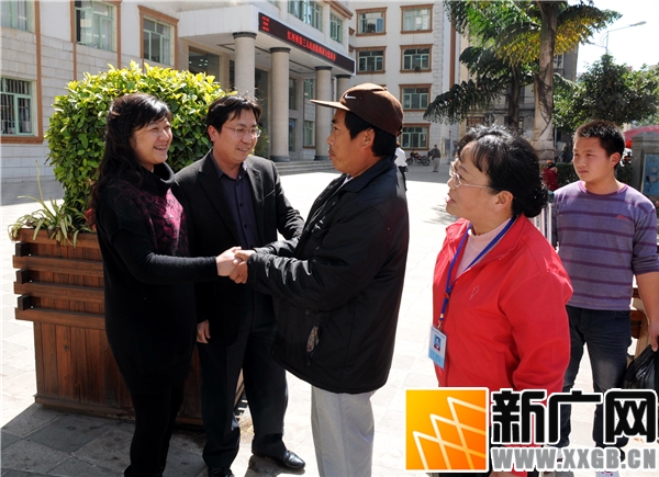 有首歌唱道:“晴朗的天空下着雨,那是一场午后的太阳雨。”2013年1月5日午后,晴空万里,蒙自市鸣鹫镇倮姑村也下了一场“太阳雨”,那是13岁的小女孩李美琼见到红河州第三人民医院的领导和专家们而情不自禁落下的泪滴。这天中午,红河州第三人民医院的领导,带领为小美琼手术的主任医师赵林和王大锋医师,以及党政办的工作人员,专程到蒙自市鸣鹫镇倮姑村回访看望李美琼,鼓励李美琼要克服苦难、坚持康复锻炼,并且也争取为她先天性脊柱裂和左髋关节脱出的进一步治疗创造条件。赵林主任还教给李美琼具体的康复锻炼方法。同时,考虑到康复锻炼除了需要坚强的毅力,还要消耗大量体力,医院领导还为李美琼送去了营养品,并鼓励李美琼说:“希望看到你的康复效果一天天好起来。”