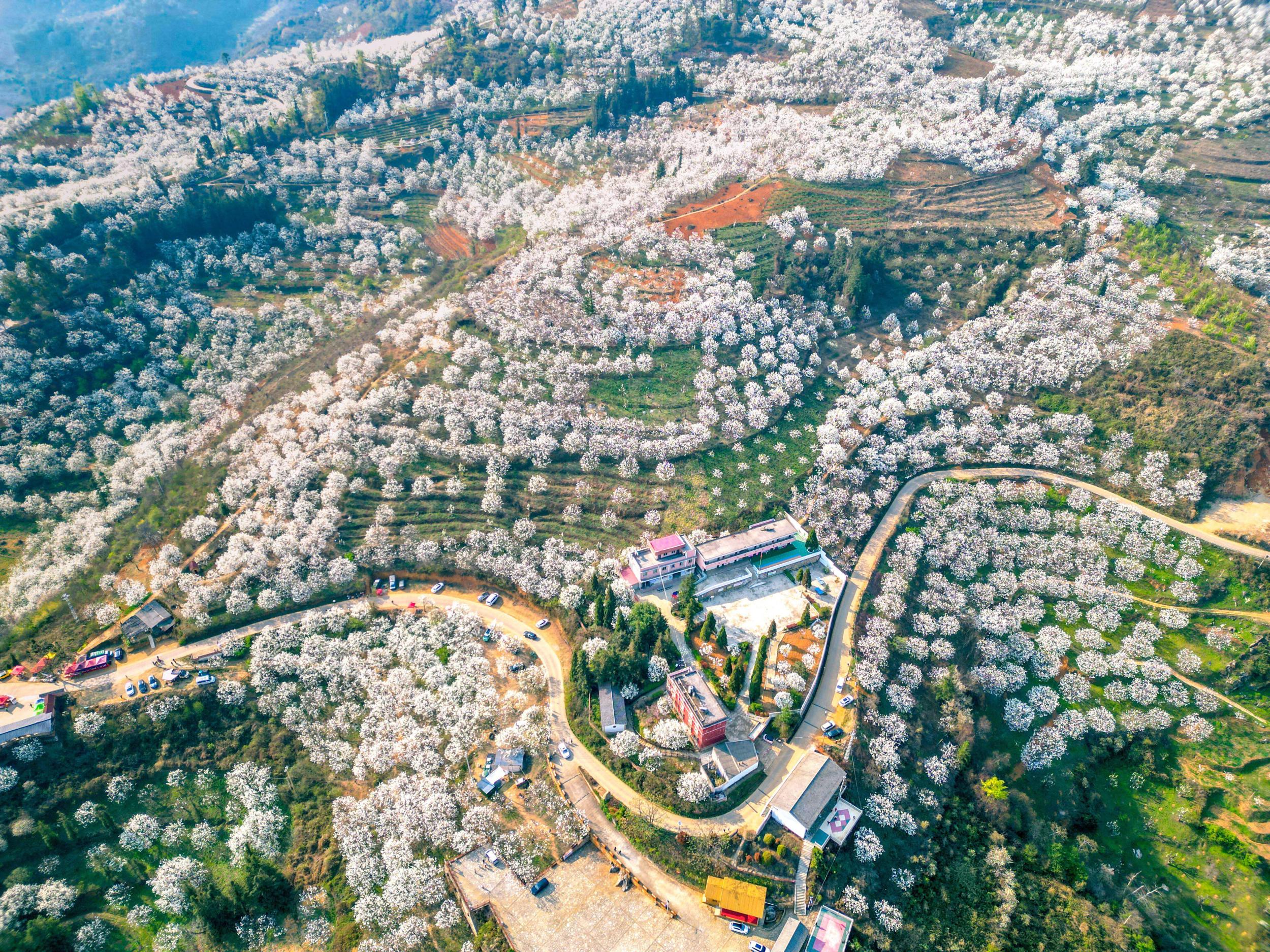 当春风漫过山野,红河哈尼族彝族自治州个旧市鸡街镇毕业红村委会加级寨迎来了一年一度的梨花绽放。14000余亩的梨花层层叠叠、挨挨挤挤,从山脚一直铺到山顶,勾勒出锡都春日独有的白色浪漫。