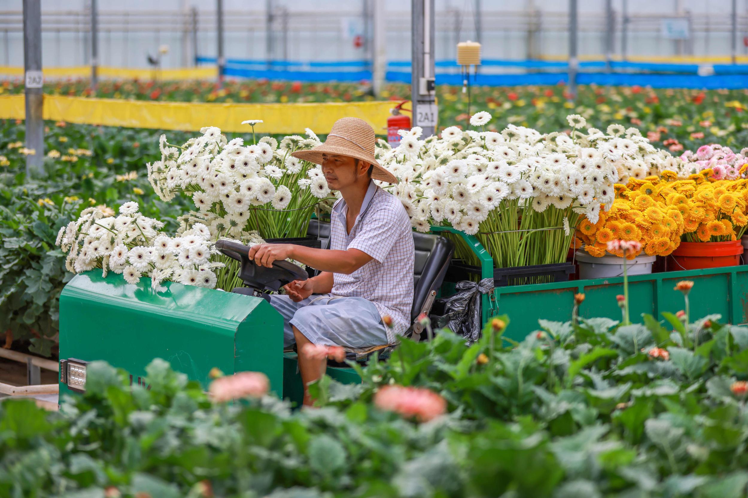 春日,走进位于红河哈尼族彝族自治州开远市国家现代农业产业园的开远天华生物产业有限公司,800余亩现代化温室大棚整齐排列,工人正忙着将鲜花采摘、分拣、包装,非洲菊、玫瑰、蝴蝶兰等上千个品种鲜花很快将被运送至全国各地。