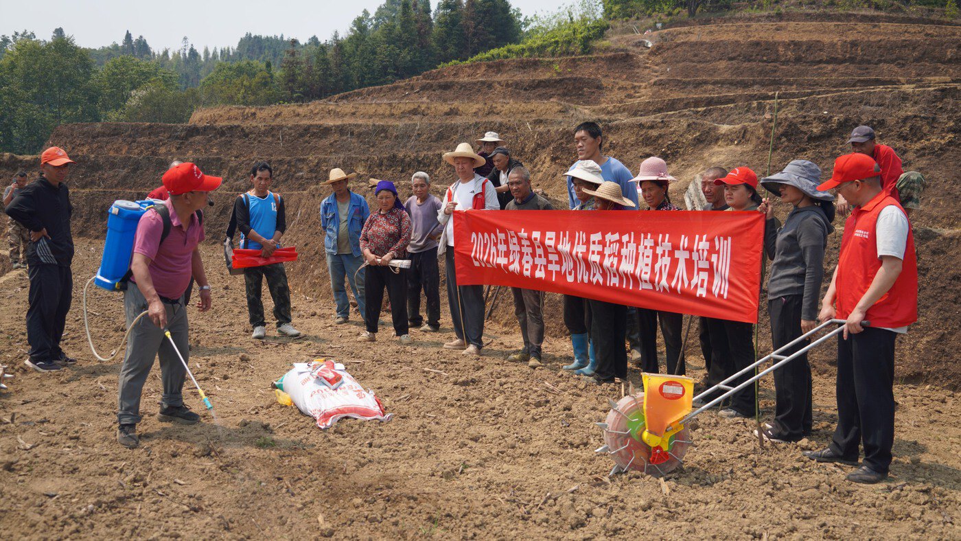 走进略马村旱地优质稻示范区,只见农科技术人员手把手向农户传授种植技术,现场示范开沟、播种、覆土的标准化操作,围绕种植密度把控、化肥科学施用、病虫害精准防控等关键环节细致讲解,从种子处理到农药选择,从肥料配比到防控节点,逐一解答农户疑问。