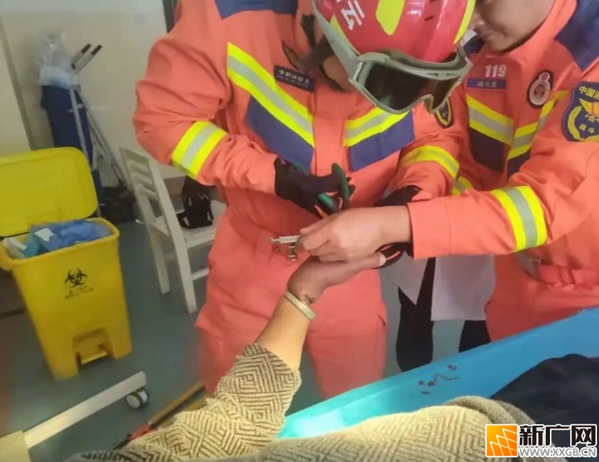 2月21日上午9时57分,石屏哨冲镇消防工作站的电话“叮铃铃”急促响起,电话那头传来求助声:一位老人的左手被手镯死死卡住,怎么都取不下来,疼得受不了啦。接到报警后,哨冲镇消防站那是一刻都没耽搁,立马出动往现场赶去。