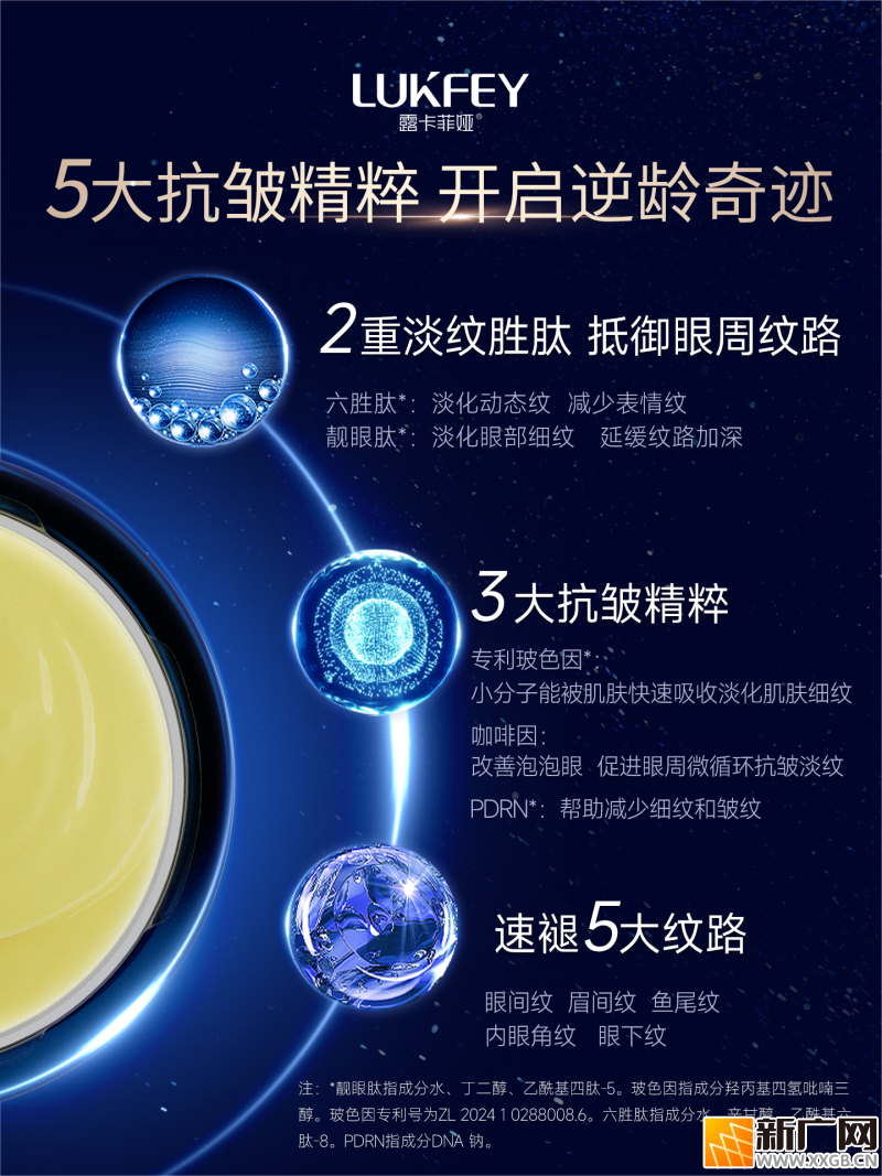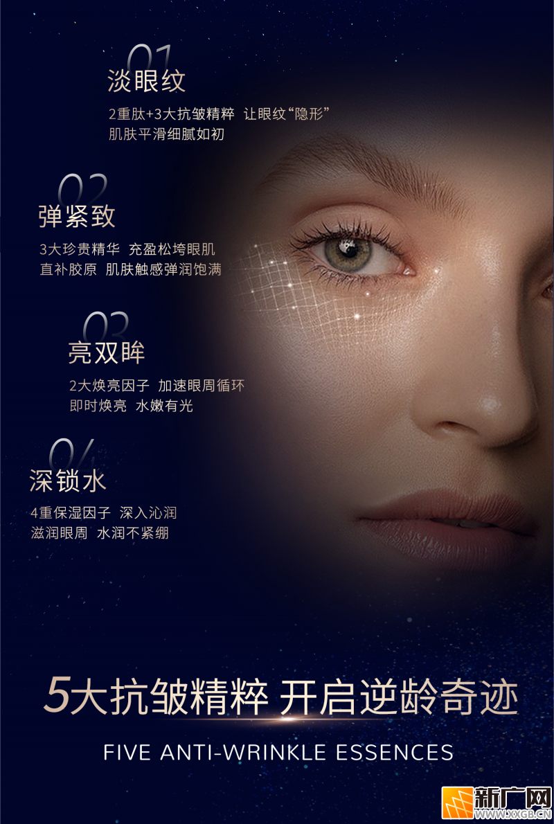 人群适配:25+初抗老人群可预防干纹、细纹生成;熟龄肌可深度淡化顽固鱼尾纹、法令纹延伸纹;熬夜党、通勤族可应对黑眼圈、浮肿、蓝光损伤等问题;学生党、护肤新手无需建立耐受,上手简单;