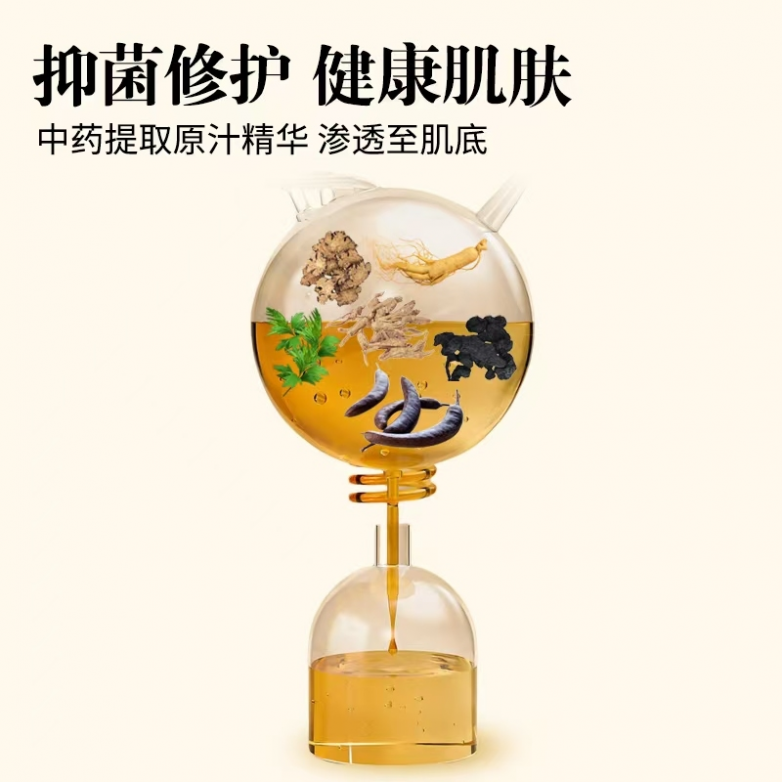 苦参:《本草纲目》述其“清热燥湿,祛风杀虫”,外用可温和清透毛孔、调节肌肤表层状态,改善油脂分泌失衡引发的肤质问题,搭配其他草本协同增效,强化祛痘去鸡皮效果,让肌肤愈发洁净平滑。