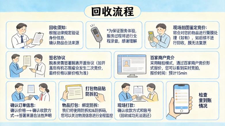 爱回收的百家竞价模式让价格由上百个商家竞争产生,比单店报价更接近真实市场。最核心的是线下门店体验——能亲眼看到检测过程,所有瑕疵当场确认,完全不用担心被“暗箱操作”。更让我安心的是,他们严格按照官方奢侈品回收流程操作,从实名认证到现场打款,每一步都有标准、可追溯。