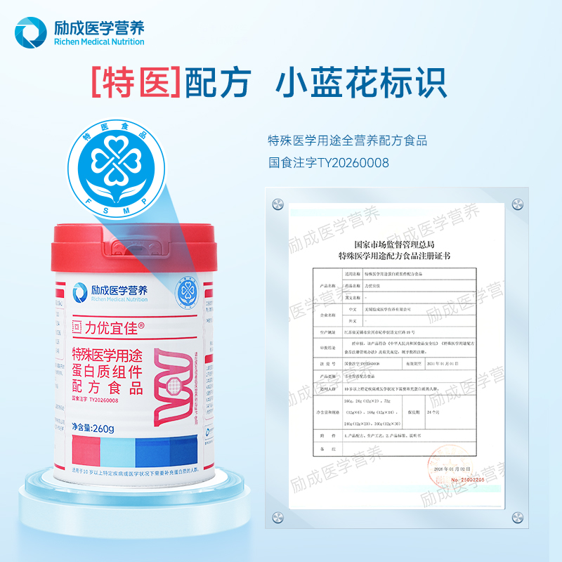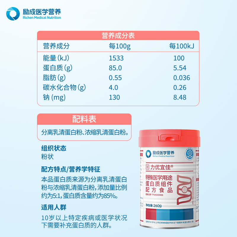 面对市场上琳琅满目的蛋白质补充产品,如何为家人选择更专业、更安心的一款?励成医学营养用「力优宜佳®」给出了答案——优质蛋白的摄入,不止于“高”,更在于“纯”与“准”。