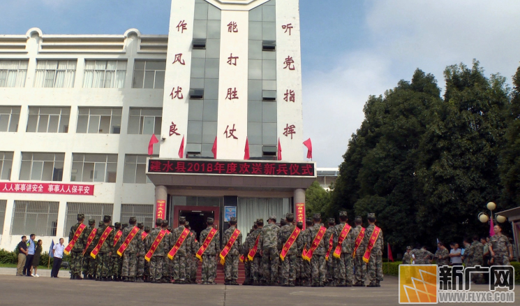 在建水县举行的2018年度欢送新兵仪式现场,记者看到,100名新兵身着崭新军装,胸佩“光荣入伍”红绶带,精神抖擞,信心满满地迎接新挑战。