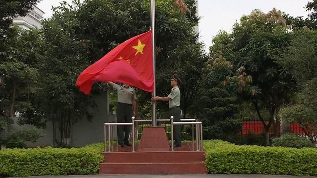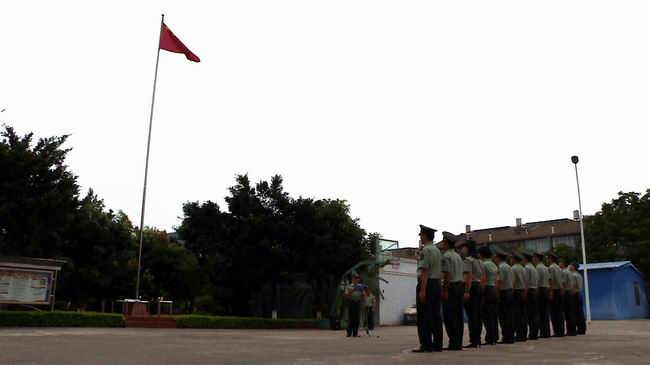 全体人员在升旗台前军装严整、列队肃立,稍顷,在大家的充满期盼的注视下,鲜艳的五星红旗伴随着雄壮、嘹亮的国歌声,与国庆晨曦一起冉冉升起,在秋日的早晨里,显得格外夺目。